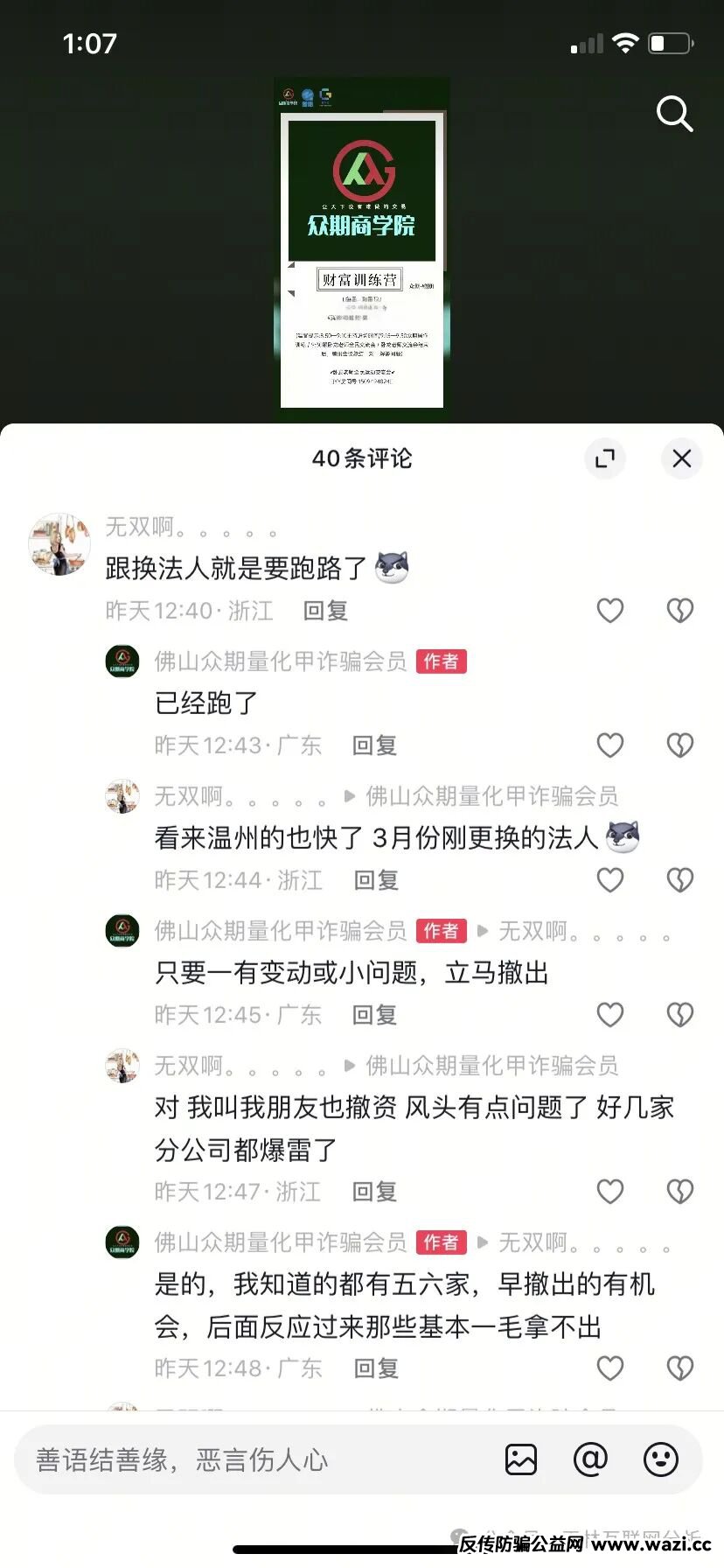 今天 曝光几个最近崩盘跑路和已经出现问题的资金盘骗局,谨防上当受骗,远离资金盘骗局,切勿参与! 众期期货(赠期1-3) 近期出来了不少期货类资金盘,一指天下等等,也不少崩盘跑路的,...