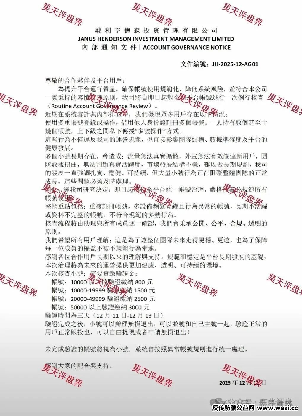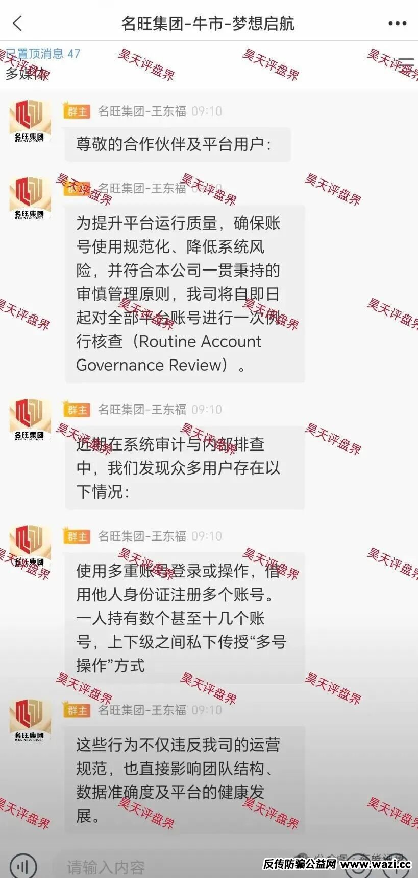 名旺集团股票跟单类资金盘骗局,也叫骏利投资,晨星投资,据受害者爆料今天彻底崩盘跑路了,诈骗团伙让受害者缴纳8%验证金继续二次收割,已经被调查中,警方也发布了预警!速度报警维权吧!千万别交!老王给出的崩盘理由还是老套路:规定新用户首次充值14000元作为底仓,宣称每日收益达500元以上可申请取款,合伙人的餐费、油费等报销超500元也能提现,同时以现金红包吸引用户参与互动。还虚构周五到周日休市期间余额宝1.5%收益等福利,诱导投资者信任。