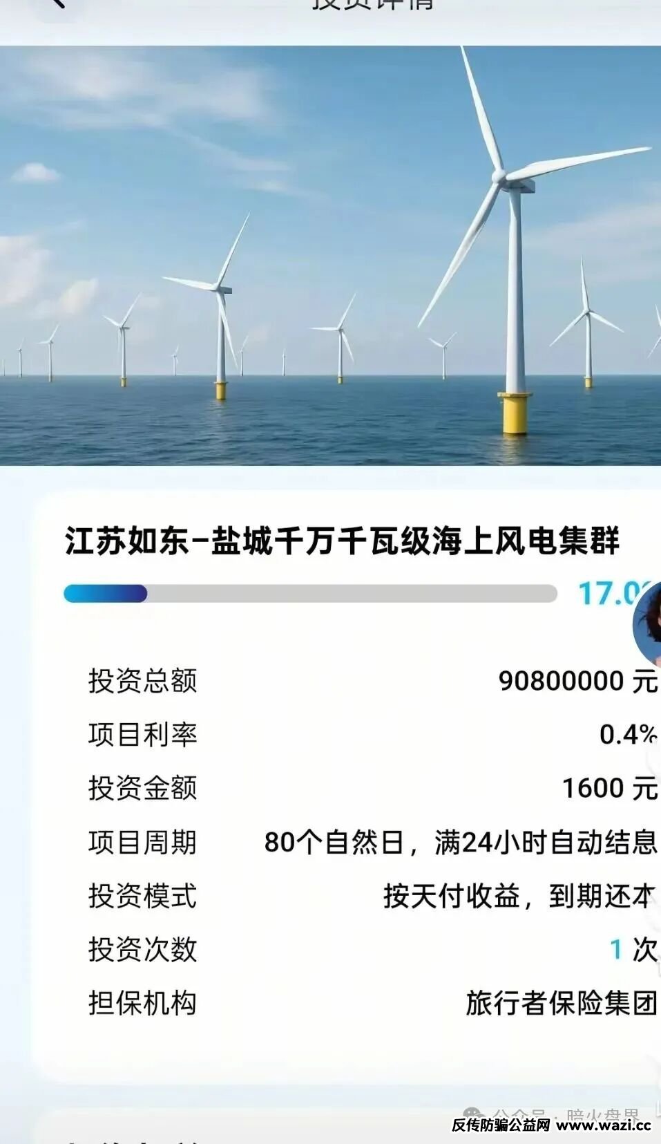 我们在看投资利率江苏如东盐城,千万千瓦级海上风电集群,项目需要融资9800万 ,日利润 0.4,月化利润 百分之12%,这么高的利润能轮得到你们来投资?