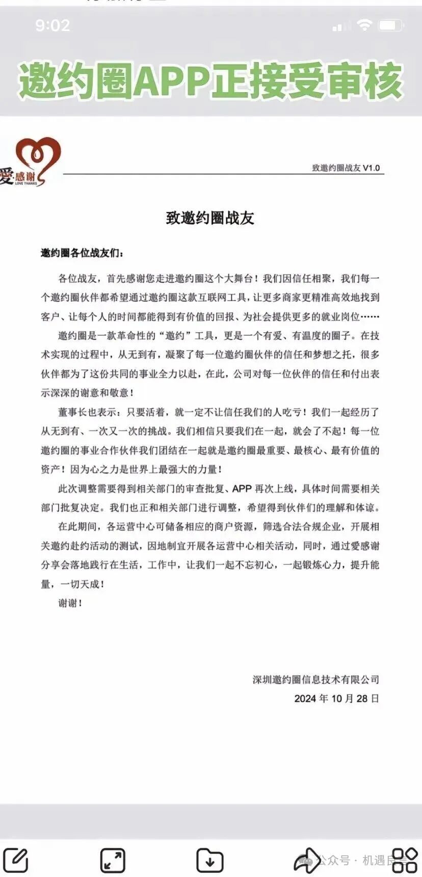 2025年10月28号那天,“邀约圈”APP突然发了个公告,说“平台被调查,暂时停运”。