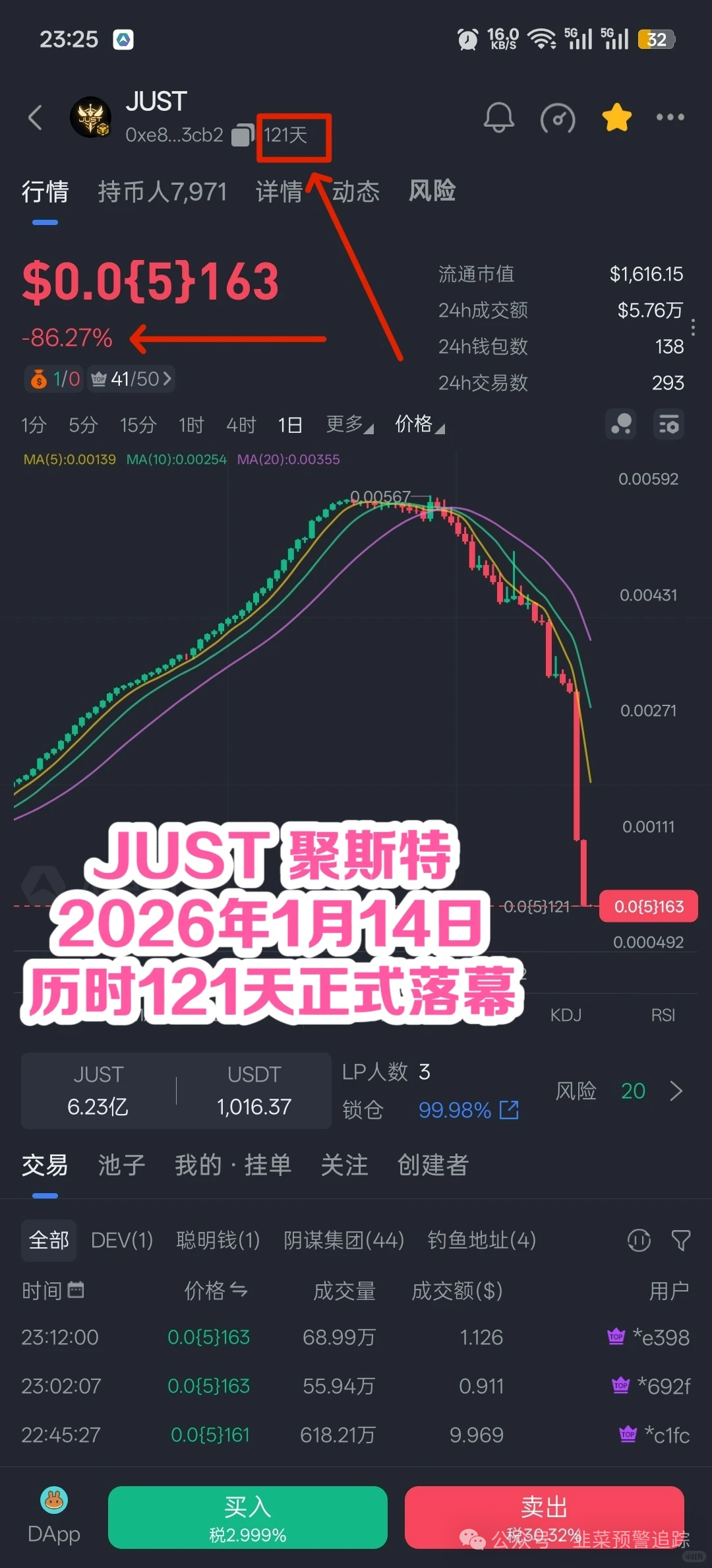 聚斯特Just是拉菲协议模仿盘,本质是资金盘。25年12月11日起盘面净流出,这是崩盘警报。其玩法照搬拉菲,靠拉人头和新人本金维持,操盘手和团队长用洗脑套路忽悠散户。拉菲崩盘剧本将在聚斯特重演,散户应立即停止追加投资、尽快提现、别拉亲友进场。别被贪心蒙蔽,保护好本金,天下没有稳赚的资金盘。