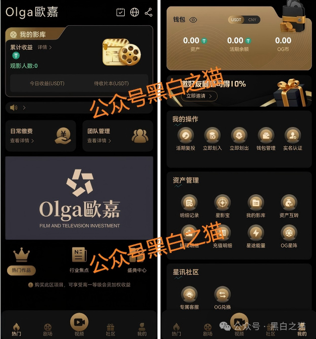 盘口内容中,所谓“影视分账”纯属虚构,Olga歐嘉以“影视分红”为核心噱头,精准瞄准想“躺赚”的普通投资者,设置极低的入门厅门槛——最低仅需158U即可参与。